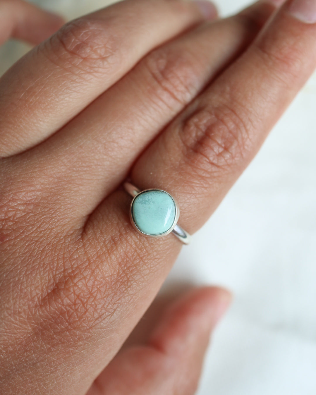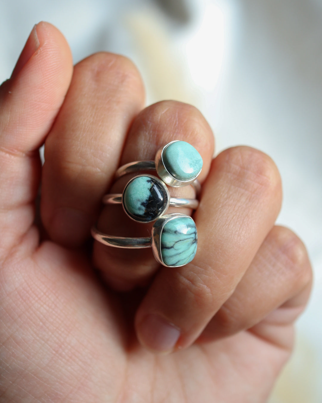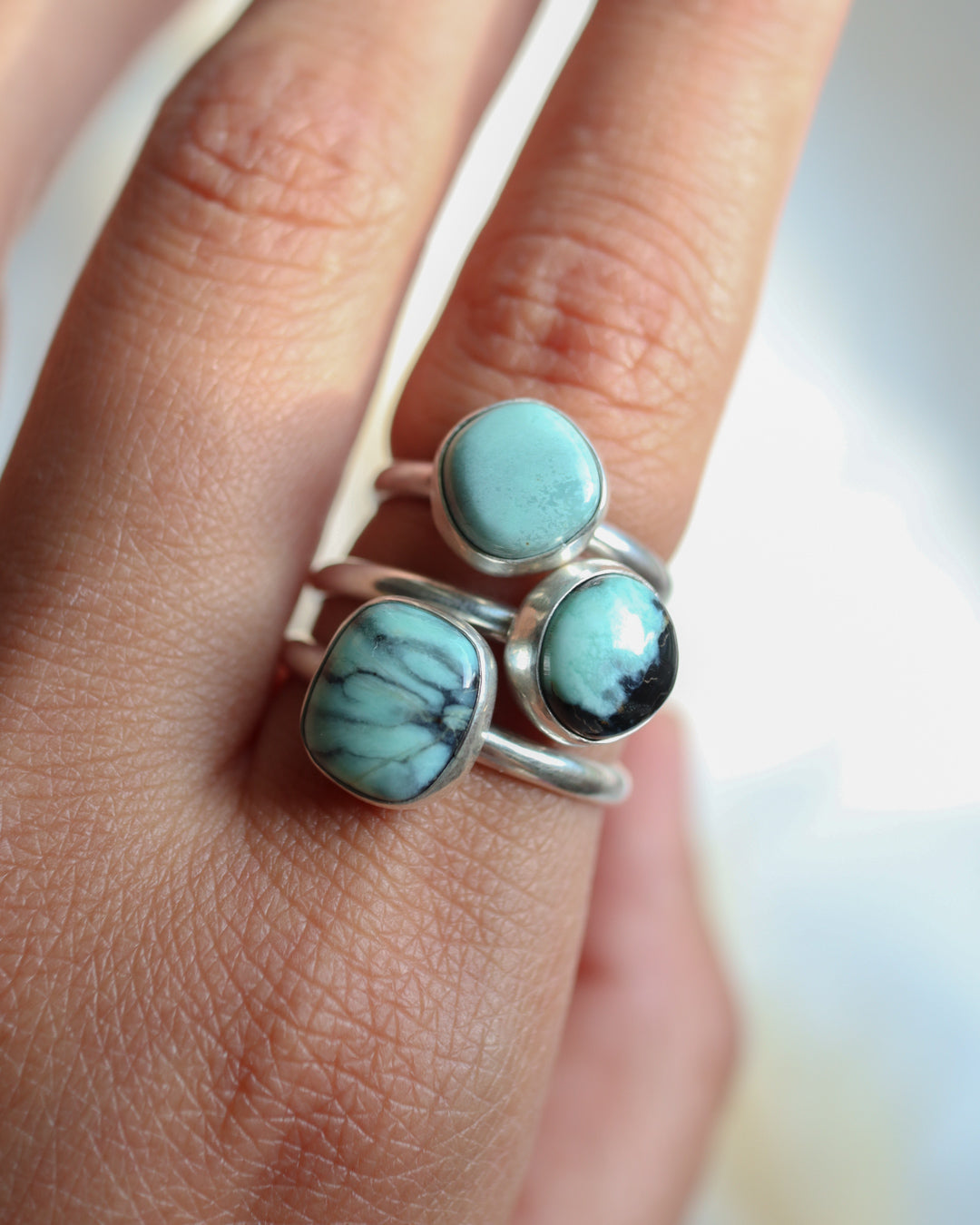 This New Lander turquoise ring is one-of-a-kind and made of sterling and fine silver. Minimal and beautiful, it is perfect for everyday wear.