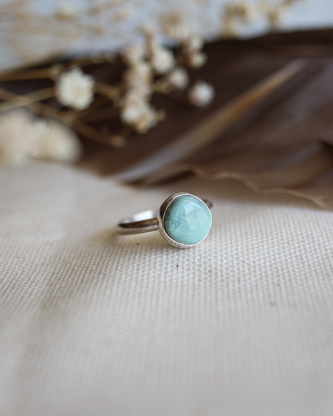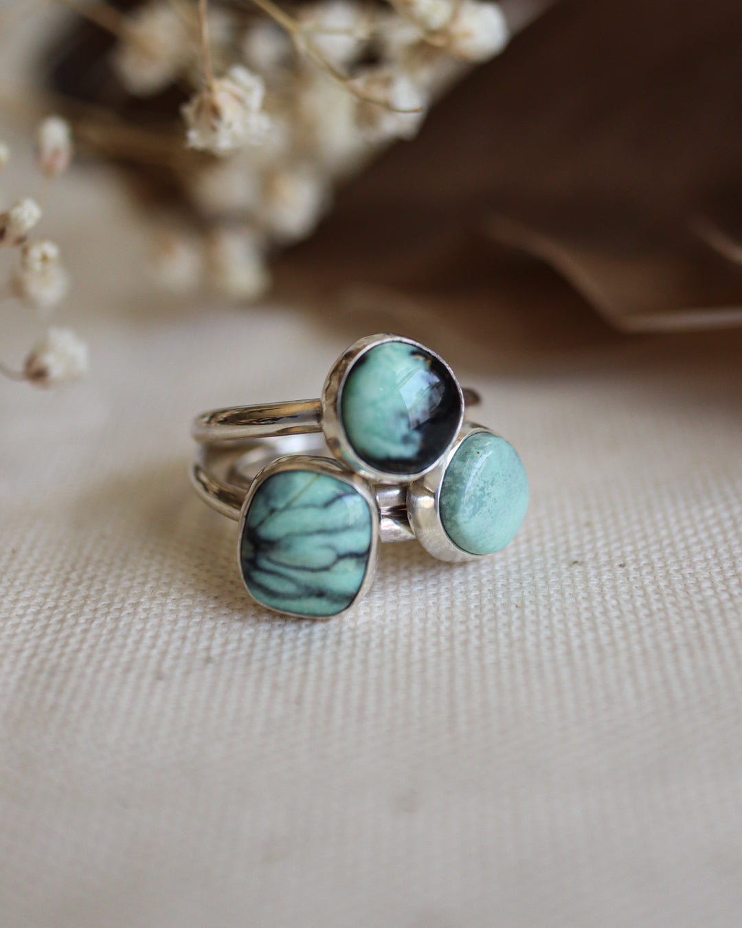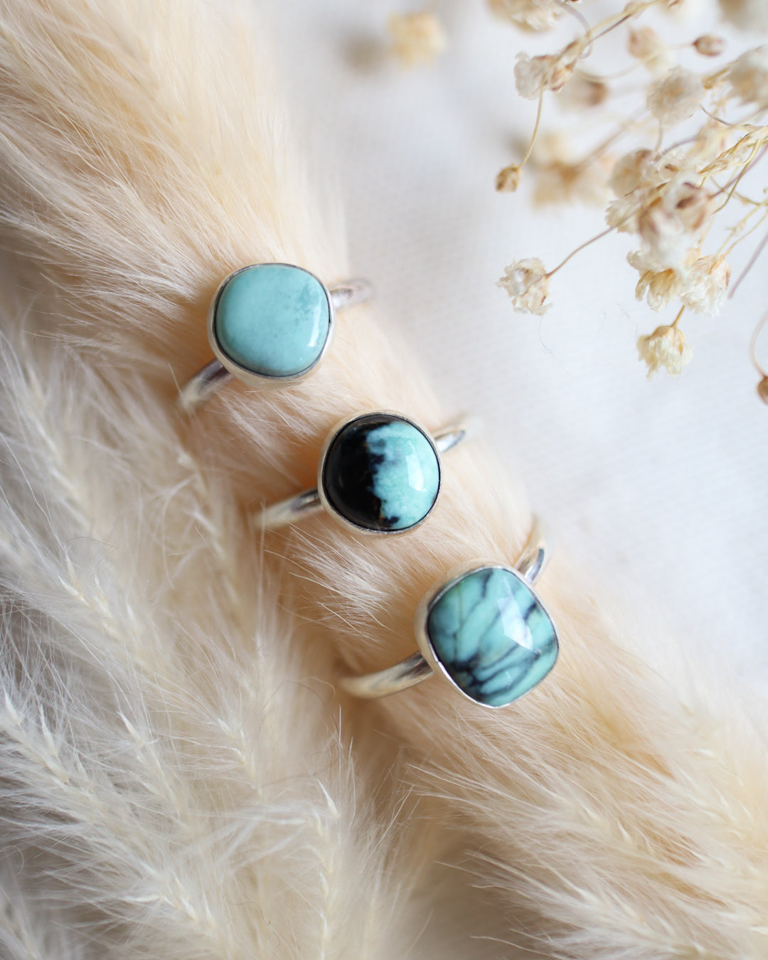 This New Lander turquoise ring is one-of-a-kind and made of sterling and fine silver. Minimal and beautiful, it is perfect for everyday wear.