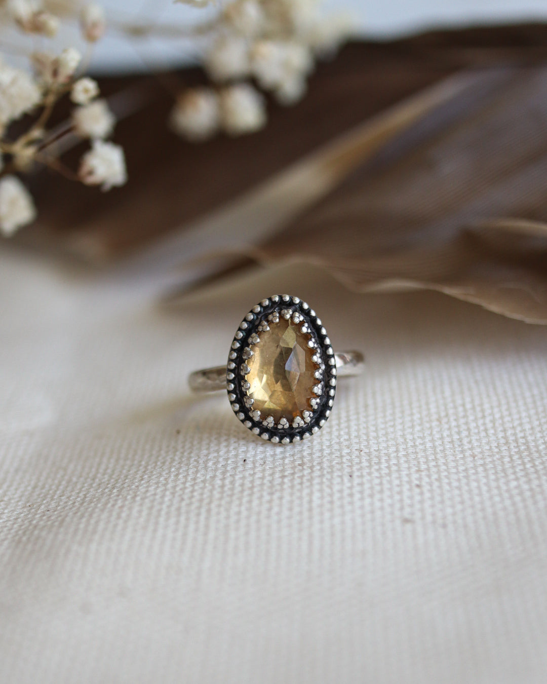 This natural citrine ring with its sunny hues symbolizes abundance and joy, infusing your life with positivity and optimism. Wear it as a reminder to shine your brightest and as a gentle nudge to seize every opportunity that comes your way.