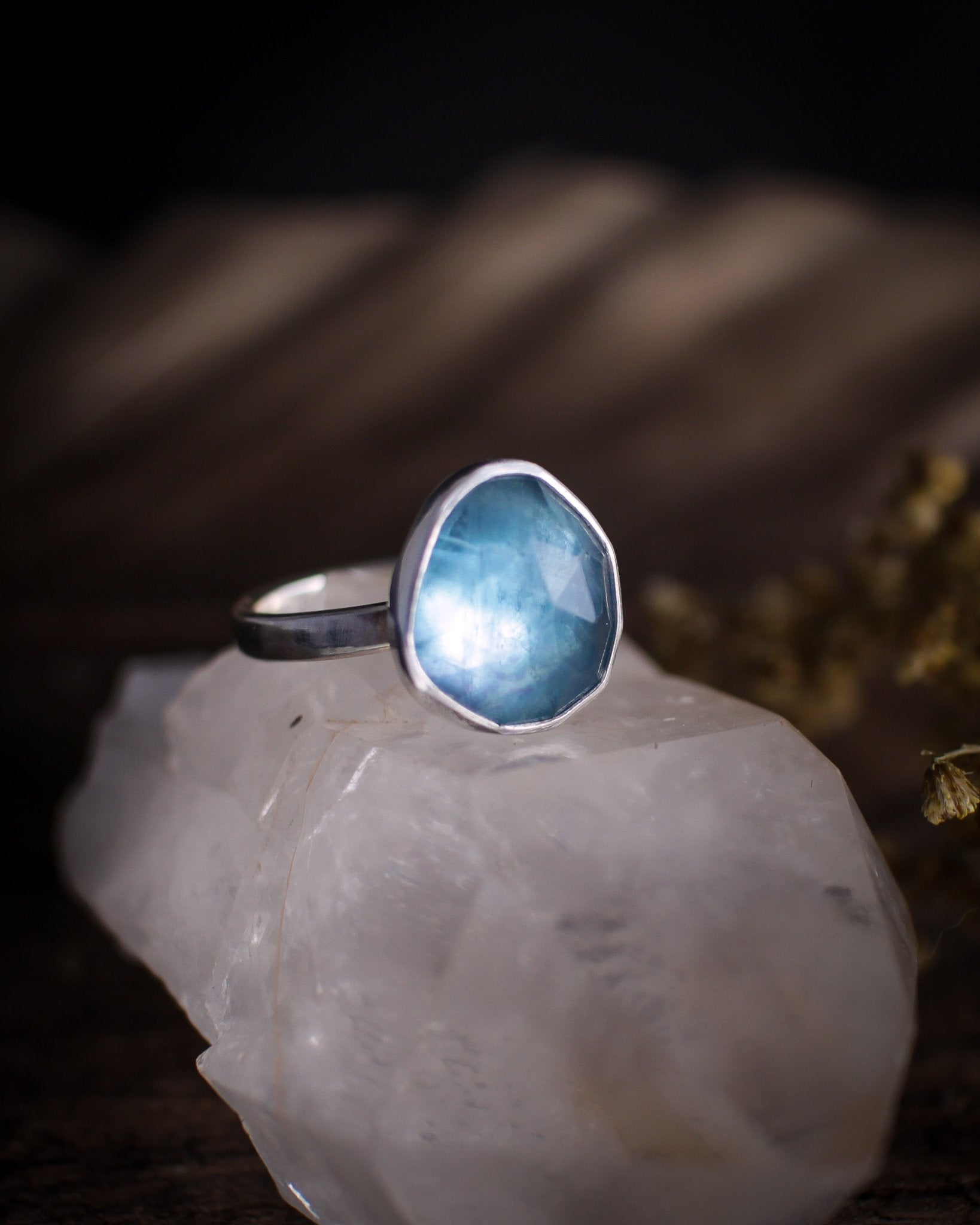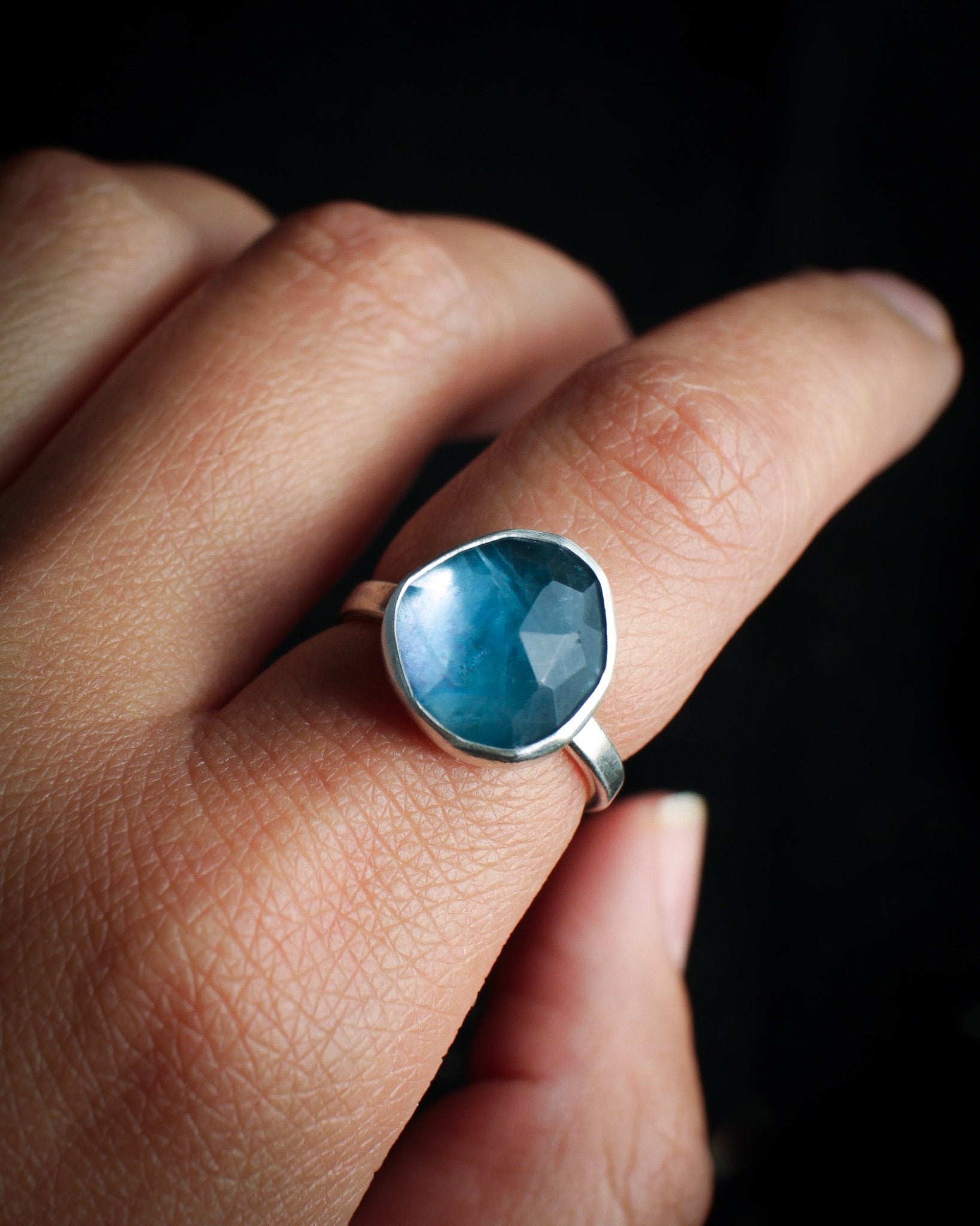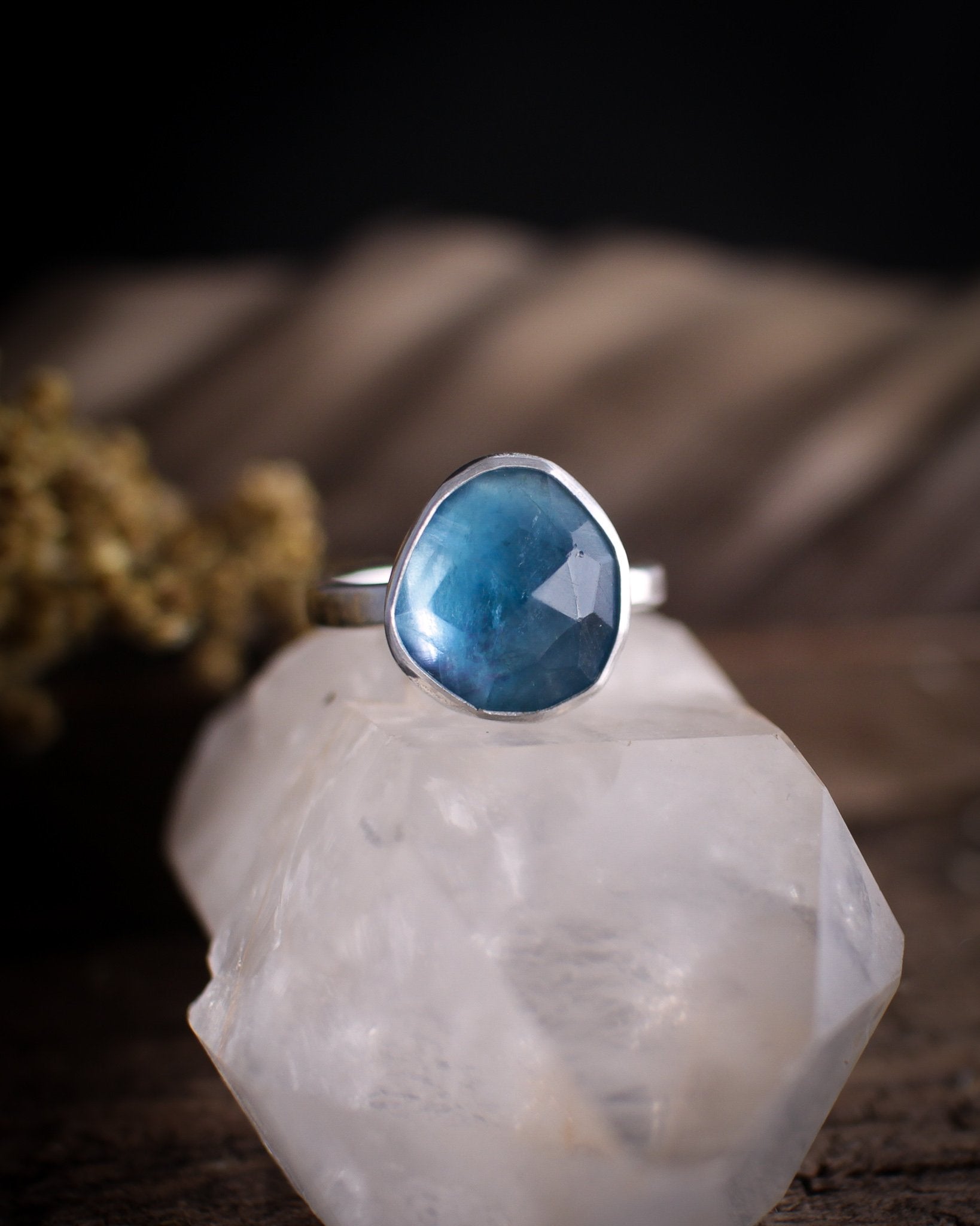 One of a kind fluorite ring. Crafted lovingly by hand using recycled sterling silver with a fine silver bezel.